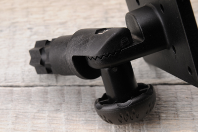 魚群探知機やGPSなどを取り付ける台です。アジャスタブル180度の首振りが可能です。工夫次第で様々なアイテムを取り付けることができます。