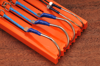 フックの大きさやアシストラインの長さが一目で分かるようになります。各パーツは、錆に強いステンレス製のスプリングとフックを使用。