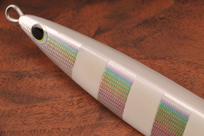 UDTとはUpside Down Triangle の略で、逆三角形の意味です。ありそうで無かった逆三角形のボディラインは、ムロアジやサバ、グルクンなどのリアルなベイトフィッシュをイメージさせます。極限までシェイピングされたボディと絶妙なバランスが、ジャーク後のホバリングを長くし、ヒラヒラと漂っている姿は、まるでベイトフィッシュが痙攣しているかのようです。フォール中にはイレギュラーで逃げ惑うかのようなスライドを見せ、ターゲットを寄せつけます。何より、抵抗が少なく軽快なジャークが可能で、体力のないアングラーでも十分に使い切ることが可能。難しいジャーキングは不要で、一定のワンピッチジャークが一番効果的。