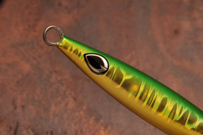 ただ巻きでヘッドを左右に振るミノーライクなウォブリングアクションは、大きな波動を生みます。ワンピッチジャークで水平方向に向き、ホバリング中にビブラートしている姿は、痙攣しているベイトフィッシュそのもの。フリーフォールでは水平をキープし長いバックスライド。ただ巻きからのワンピッチ、そしてフォールを入れるコンビネーションジャークを試していただきたい。